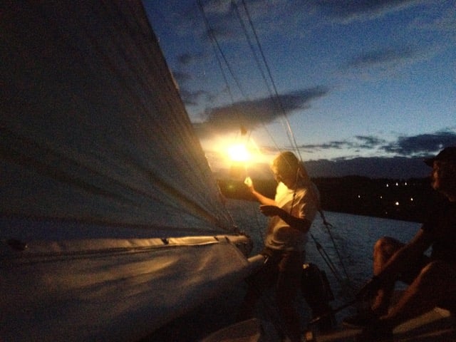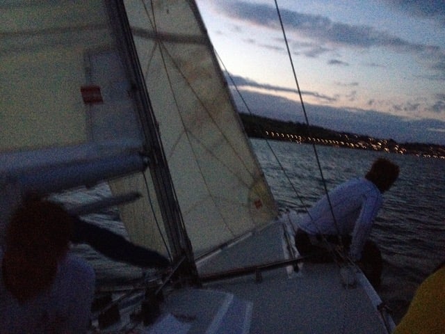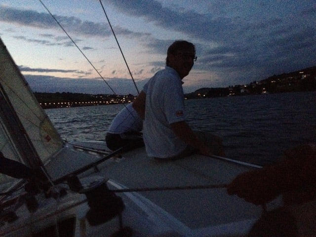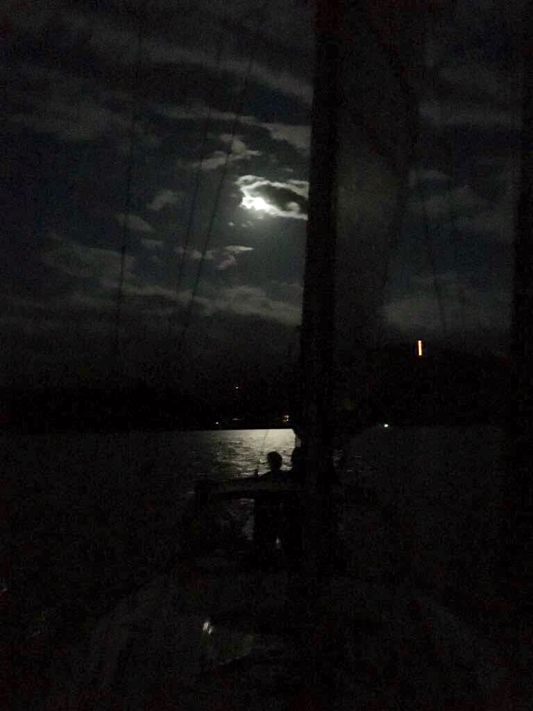 wir hatten Wind und so gingen die ersten schon früh auf Wasser und segelten bei fast Vollmond bei etwa 2-3 Bft über das dunkle Wasser.